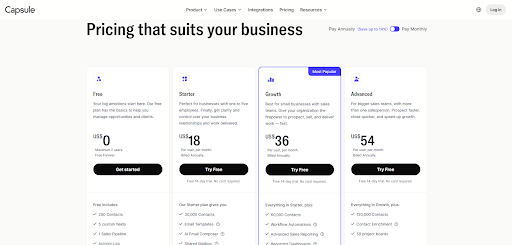 Capsule CRM Pricing Plan Overview